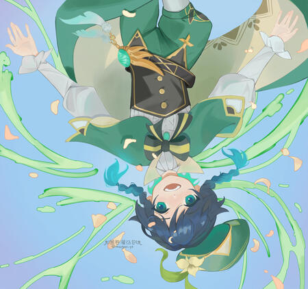 Full body chibis with a simple background and elements correlate with the character